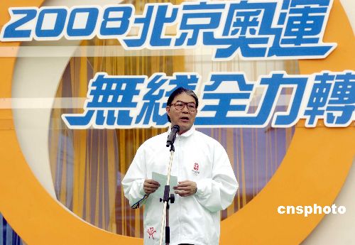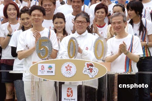 中國香港體育協(xié)會(huì)暨奧林匹克委員會(huì)會(huì)長(zhǎng)霍震霆、第29屆奧林匹克運(yùn)動(dòng)會(huì)馬術(shù)比賽(香港)有限公司行政總裁林煥光 (右)、香港無線電視廣播業(yè)務(wù)總經(jīng)理陳志云 (左),攜手主持盛世奧運(yùn)倒數(shù)500日亮燈儀式。