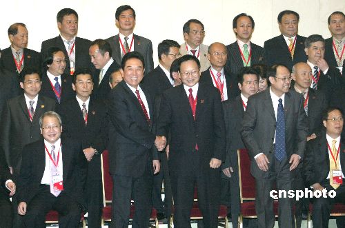 圖為國臺(tái)辦主任陳云林(前排左二)與全國臺(tái)灣同胞投資企業(yè)聯(lián)誼會(huì)成員代表合影。