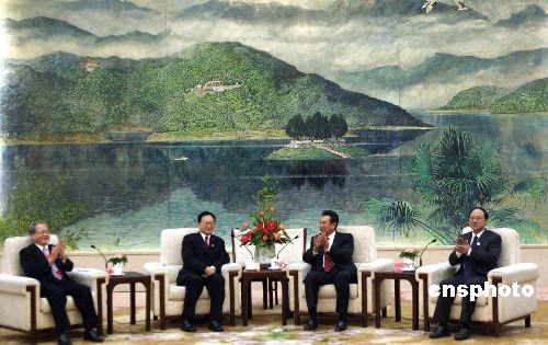 國務(wù)院臺(tái)灣事務(wù)辦公室主任陳云林(右二)在北京人民大會(huì)堂會(huì)見了剛剛當(dāng)選的全國臺(tái)灣同胞投資企業(yè)聯(lián)誼會(huì)第一屆常務(wù)理、監(jiān)事會(huì)成員。