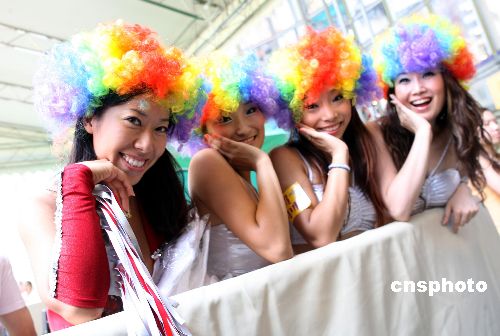 圖為創(chuàng)立北京守鎮(zhèn)啦啦隊(duì)的韓國(guó)趙守鎮(zhèn)小姐(左1)及她的隊(duì)員。