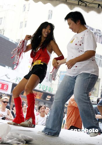 創(chuàng)立北京守鎮(zhèn)啦啦隊(duì)的韓國(guó)趙守鎮(zhèn)小姐,教香港市民學(xué)習(xí)跳啦啦舞蹈,感受運(yùn)動(dòng)場(chǎng)上火熱的氣氛。