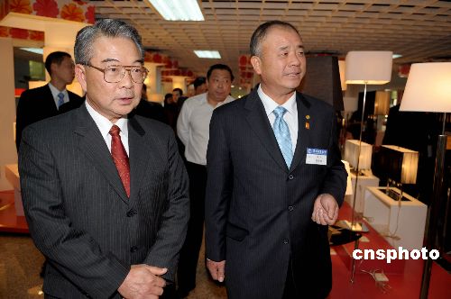 一月七日,臺(tái)灣海峽交流基金會(huì)副董事長(zhǎng)許勝雄(左)一行在深圳參觀臺(tái)資企業(yè)立大車料有限公司。中新社發(fā) 陳文 攝