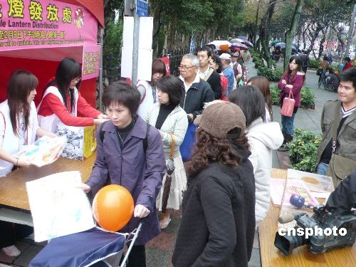 2月6日,元宵節(jié)將至,臺北市向市民免費發(fā)放元宵節(jié)小提燈。市民只要捐兩張發(fā)票,就可獲得一組牛年小提燈,民眾踴躍領(lǐng)取,排隊長達(dá)數(shù)百米。中新社發(fā) 路梅 攝