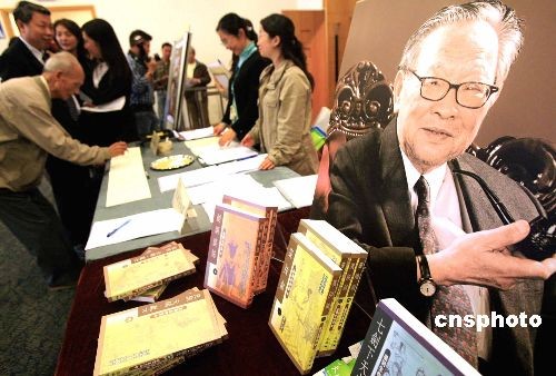 二月十六日,為緬懷上月底病逝的武俠小說宗師梁羽生,香港《大公報》和天地圖書在香港中央圖書館舉辦座談會。著名武俠小說作家金庸、武俠小說研究專家兼教授鄺健行、電影導(dǎo)演張鑫炎、對聯(lián)專家楊瑞生,天地圖書副總編輯孫立川等就梁羽生在當(dāng)代文學(xué)、詩詞、楹聯(lián)等方面的造詣和成就以及生平逸事趣聞,與其著作愛好者和公眾座談分享。圖為展出的梁羽生部分作品。中新社發(fā) 張勤 攝