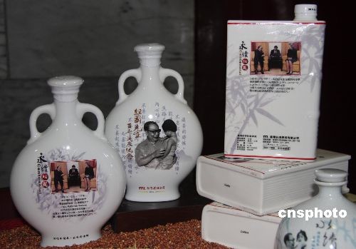 4月13日是蔣經(jīng)國先生百年誕辰,臺灣煙酒公司配合推出3款蔣經(jīng)國百年誕辰紀(jì)念酒。圖為其中一款仿古的白磁提耳瓶,在臺灣陶瓷重鎮(zhèn)鶯歌訂作陶瓷瓶身,裝入臺灣原窖高梁酒,一面印有1986年馬英九擔(dān)任翻譯時(shí),和經(jīng)國先生的合照。酒瓶的另一面印有蔣經(jīng)國先生抱著小女孩的合照,表現(xiàn)蔣經(jīng)國先生的親民形象。中新社發(fā) 耿軍 攝