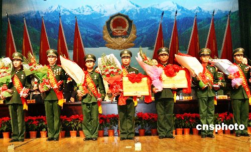 | 十一月六日下午,新疆公安邊防總隊(duì)召開表彰大會,參加天山-1號(2006)中哈聯(lián)合反恐演習(xí)的兩支武警機(jī)動中隊(duì)和一百六十八名精英將士受到表彰。八月二十四日至二十六日,為期三天的天山-1號(2006)中哈聯(lián)合反恐演習(xí)分別在哈薩克斯坦阿拉木圖州和中國新疆伊寧市舉行,新疆公安邊防總隊(duì)和新疆反恐怖特別偵察隊(duì)的八百名官兵參加了此次演習(xí)。本次演習(xí)是在上海合作組織框架內(nèi),中哈執(zhí)法安全部門首次舉行的聯(lián)合反恐演習(xí),提高了對兩國執(zhí)法安全機(jī)關(guān)聯(lián)合打擊恐怖主義的組織能力和協(xié)同作戰(zhàn)能力,對于震懾和打擊本地區(qū)“三股勢力”,維護(hù)邊境地區(qū)的安全穩(wěn)定有著十分重要的意義。中新社發(fā) 劉新 攝