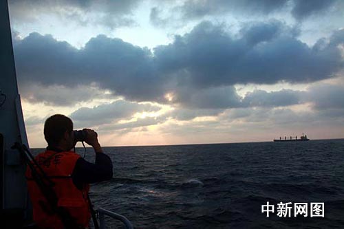 牛年正月初一,迎著亞丁灣海域新春第一縷朝霞,“?凇碧枌楎屩鹋炞o航“豐盛海”號商船。中新社記者 孫自法 攝