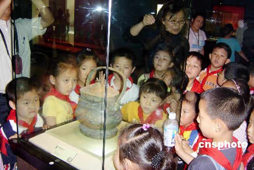 江蘇鎮(zhèn)江實驗學校的孩子們在鎮(zhèn)江博物館興致勃勃地參觀各種文物。中新社發(fā) 石玉成 攝