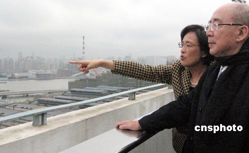 十二月二十一日,正在上海參加第四屆兩岸經(jīng)貿(mào)文化論壇的中國(guó)國(guó)民黨主席吳伯雄造訪上海世博局,登高俯瞰2010年上海世博會(huì)園區(qū)工地。中新社發(fā) 許曉青 攝