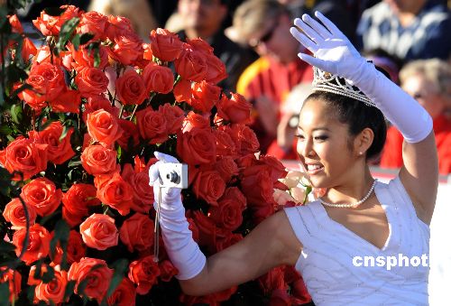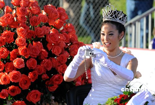 當(dāng)?shù)貢r(shí)間1月1日上午,第120屆美國玫瑰花車大游行在美國加州帕薩迪納市正式舉行。17歲華裔學(xué)生李君慧以第91屆美國“玫瑰皇后”的身份,引領(lǐng)玫瑰花車展開盛大游行。 中新社發(fā) 張煒 攝