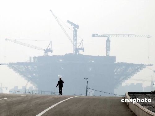 1月4日,2010年上海世博會中國館日前實現(xiàn)主體結(jié)構(gòu)封頂。作為上海世博會五大永久性建筑之一,中國館結(jié)構(gòu)封頂標志著世博會園區(qū)建設(shè)正在順利推進。中新社發(fā) 井韋 攝