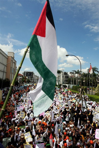 1月3日,印尼民眾舉行游行活動(dòng)抗議以色列軍隊(duì)襲擊加沙地帶。