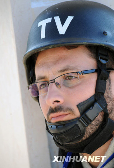 圖:記者戴鋼盔穿防彈服在加沙進(jìn)行報道(3)