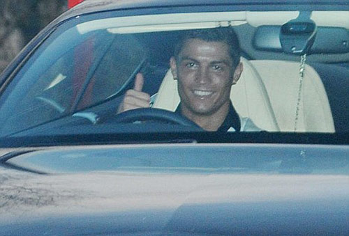 C羅在車禍后,仍然到曼聯(lián)俱樂部進(jìn)行訓(xùn)練。圖為在離開訓(xùn)練基地時,C羅面對鏡頭微笑示意。