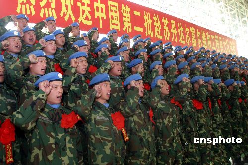 2009年1月10日,在濟南國際機場,有關(guān)部門為中國第二批赴蘇丹達爾富爾維和工程兵大隊第一梯隊153名官兵舉行了歡送儀式。據(jù)悉,此次擔(dān)任維和任務(wù)的官兵主要來自濟南軍區(qū)和北京軍區(qū),他們將擔(dān)負(fù)修建和維護道路、橋梁、建筑物、停機坪和防御工事,勘察水源、鉆井、修建取水輔助設(shè)施等工程保障任務(wù)。