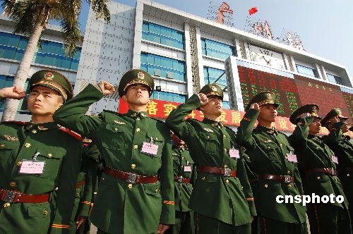 廣州火車站執(zhí)勤武警誓師。中新社發(fā) 柯小軍 攝