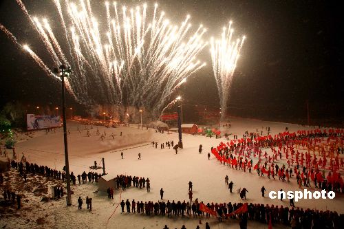 1月11日晚,銀裝素裹、晶瑩秀麗的沈陽(yáng)棋盤山冰雪大世界歡聲雷動(dòng),“2009中國(guó)沈陽(yáng)國(guó)際冰雪節(jié)、盛京燈會(huì)、關(guān)東廟會(huì)”拉開(kāi)帷幕,這一冬日盛會(huì)為期35天。中新社發(fā) 黃金昆 攝