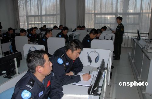 維和防暴隊員進行外語學(xué)習(xí)。中新社發(fā) 由永懷 攝