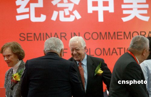 1月12日,紀(jì)念中美建交30周年研討會(huì)在北京開(kāi)幕。中國(guó)前副總理錢其琛、美國(guó)前總統(tǒng)卡特、美國(guó)前國(guó)務(wù)卿基辛格等在開(kāi)幕式上致辭。研討會(huì)會(huì)期兩天,以紀(jì)念中美建交30周年為主題,就中美關(guān)系30年發(fā)展的主要經(jīng)驗(yàn)及對(duì)世界的意義、中美關(guān)系未來(lái)展望及對(duì)發(fā)展兩國(guó)關(guān)系的建議等議題進(jìn)行研討。 中新社發(fā) 鄭雄增 攝