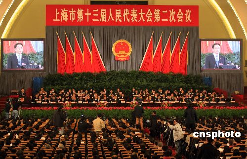圖:上海市十三屆人大二次會議開幕