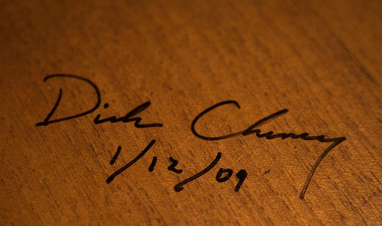 圖:美副總統(tǒng)切尼卸任前在百年辦公桌上留名(2)