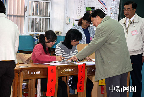 1月18日上午,備受全臺(tái)和外界關(guān)注的消費(fèi)券開始在臺(tái)灣各發(fā)放所發(fā)放。圖為今天上午11時(shí),臺(tái)灣行政部門負(fù)責(zé)人劉兆玄來(lái)到設(shè)于臺(tái)北市金華中學(xué)的消費(fèi)券發(fā)放所領(lǐng)取消費(fèi)券。陳立宇 攝