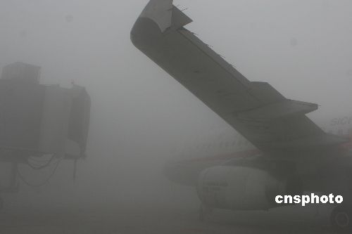 繼1月18日成都雙流國際機場遭受近年來最為嚴重的一場濃霧天氣襲擊后,19日,一場更為嚴重的濃霧再次襲擊雙流機場。這場濃霧發(fā)生在早上5:30左右,當時能見度僅有10米左右,機場被迫關(guān)閉。中新社發(fā) 呂俊明 攝