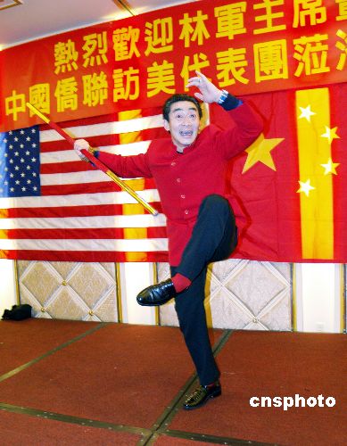 六小齡童向華人華僑表演孫悟空絕活,受到歡迎。 中新社發(fā) 盧威 攝