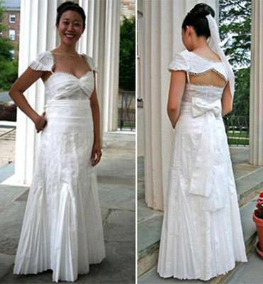 2007年12月19日美國肯塔基州的新娘珍妮佛·卡農(nóng)與新郎多伊·尼科爾斯卻在紐約時代廣場的一個公共廁所內(nèi)舉行了婚禮。更讓所有人目瞪口呆的是,當(dāng)天珍妮佛身上所穿的婚紗,竟全部是用衛(wèi)生紙制作而成!