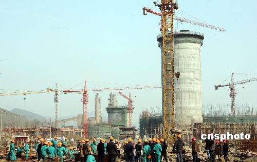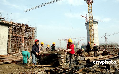 1月22日,外來(lái)民工在四川災(zāi)后重建重點(diǎn)扶持項(xiàng)目廣安市廣能云峰水泥廠建設(shè)工地緊張施工。來(lái)自貴州、云南和四川宜賓、南充等地區(qū)的200多位民工,主動(dòng)放棄返鄉(xiāng)團(tuán)聚的機(jī)會(huì),加班加點(diǎn)戰(zhàn)斗在工地上。據(jù)悉,該項(xiàng)目2008年9月正式開(kāi)建,目前工程總量已完成50%以上,力爭(zhēng)2009年6月底前提前投產(chǎn)。中新社發(fā) 邱海鷹 攝