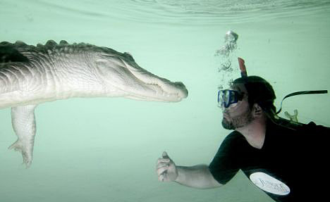 據(jù)英國(guó)媒體報(bào)道,1月22日,美國(guó)佛羅里達(dá)州邁阿密市叢林島動(dòng)物園的員工西恩·曼寧(Sean Manning)不穿戴任何保護(hù)性衣物進(jìn)入鱷魚池“與鱷共舞”。
