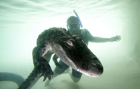 圖:美國(guó)男子無(wú)任何保護(hù)措施“與鱷共舞”(3)