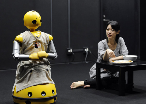 會表演話劇的機器人:在日本大阪大學,一個取名為若丸的機器人與一名女演員同臺表演。這臺時長為20分鐘的演出由機器人與演員共同完成。