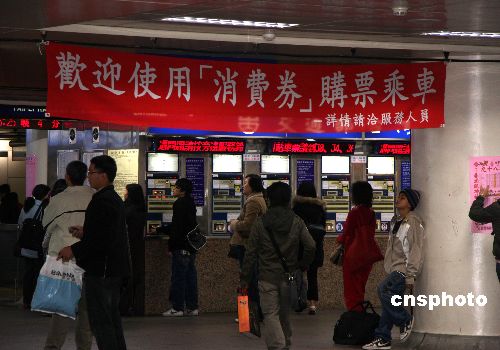 圖:臺(tái)北車站可使用消費(fèi)券購(gòu)火車票