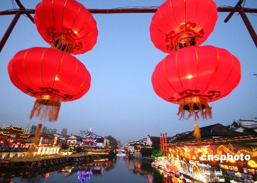 1月23日晚,2009年的中國南京夫子廟——秦淮河風光帶國際燈會開始亮燈。本屆燈會從1月26日正式開始,到2月12日結(jié)束,規(guī)模和數(shù)量都超過往屆。屆時,50組大中型燈組、40萬盞手工扎制的花燈將把夫子廟景區(qū)裝點成燈的世界、花的海洋。