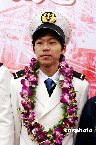南通如東縣的小伙子沈玉龍,今年才21歲,外表有點(diǎn)靦腆,但是在船上工作一點(diǎn)也不含糊。中新社發(fā) 李根 攝