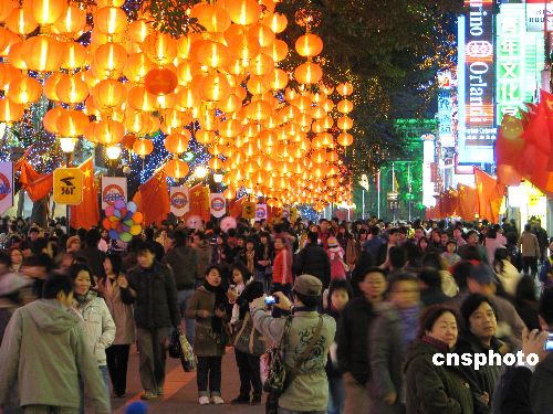 1月24日晚,廣州北京路步行街人頭攢動(dòng),處處充滿節(jié)日氣氛。中新社發(fā) 曾志gz 攝