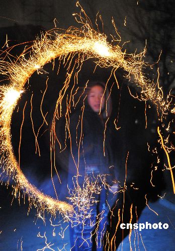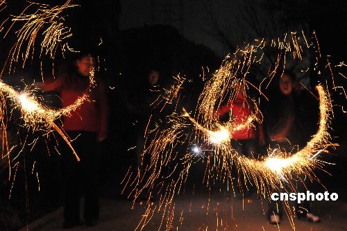 圖:庫爾勒的孩童放鞭炮迎新年