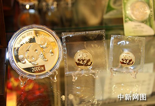 為紀(jì)念大熊貓團(tuán)團(tuán)、圓圓來(lái)臺(tái)與民眾見(jiàn)面。位于臺(tái)北市和平東路三段68——1號(hào)的臺(tái)灣大洋金銀幣有限公司特推出中國(guó)人民銀行發(fā)行的2008、2009年熊貓紀(jì)念金幣供臺(tái)灣民眾選購(gòu)。中新社記者 陳立宇 攝