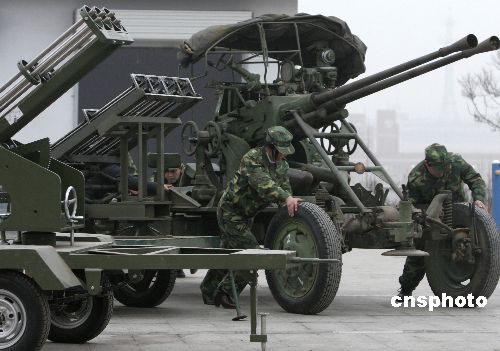 2月1日傍晚,河南洛陽孟津縣人工影響天氣作業(yè)基地的工作人員移動高炮和火箭發(fā)射架進(jìn)入作業(yè)狀態(tài)。當(dāng)晚11:50及2日凌晨5:00,除偃師市和汝陽縣因天氣條件不具備而沒有實施作業(yè)外,其他7縣均實施了多批次人工增雨雪作業(yè),共發(fā)射火箭彈120枚,炮彈200發(fā),作業(yè)區(qū)內(nèi)普降小雨,有效緩解了當(dāng)?shù)厣只痣U等級,也使旱情得到了些許緩解。中新社發(fā) 張曉理 攝