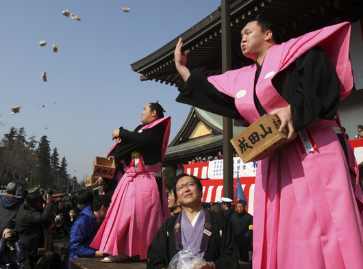 2月3日,在日本靜岡縣熱海市舉行了“撒豆子”儀式,炒熟的黃豆在日本被稱(chēng)為“福豆”,儀式主辦方請(qǐng)來(lái)名人站在高處,將炒熟的黃豆拋向人群,以驅(qū)邪迎福,祈愿身體健康。