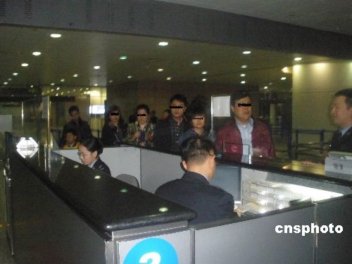 首批美國車禍幸存者5日晚飛抵上海,其中包括傷愈出院的一家三口吳守桂、包瑞華、吳雙以及一月三十日當(dāng)天未參加大峽谷一日游的四名游客張欣凡、周茵、戴解華、李葉娟一行七人。中新社發(fā) 浦邊 攝