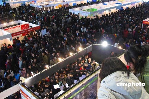 2月7日,一年一度的北京最大規(guī)模招聘盛會——“北京‘共創(chuàng)未來’大型人才招聘會”在中國國際展覽中心舉行。本次大會由北京多家人才聯(lián)合主辦,設立展位近千個,展會開放四個展館,2號館為IT、電子、通訊專館,3號館為建筑房地產、現(xiàn)代制造業(yè)、生物醫(yī)藥及廣告?zhèn)髅綄p^,4號館、8B號館為綜合招聘館。在京10萬高校畢業(yè)生前往應聘。