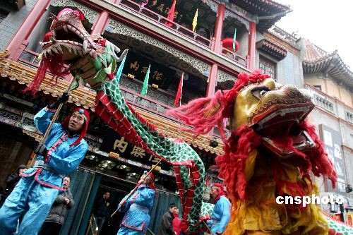 2月8日,首屆傳統(tǒng)元宵燈會(huì)在北京大柵欄商業(yè)街舉辦,這也是大柵欄恢復(fù)傳統(tǒng)元宵燈會(huì)的第一年。 “正月十五鬧花燈”自100多年前就是前門大柵欄的傳統(tǒng)民俗,元宵燈會(huì)上布置數(shù)十款樣式各異的花燈供游人欣賞,還特別邀請了民俗藝術(shù)家們?yōu)榍皝碣p燈的游客獻(xiàn)上極具老北京民俗特色的精彩表演,以最大程度地展現(xiàn)老北京元宵燈會(huì)的場面。