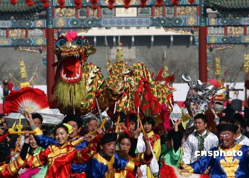 元宵節(jié)來臨,北京前門大街舉行民間花會踩街活動,借此宣告修繕一新的前門大街正式開街。踩街是一種中國傳統(tǒng)民間民俗藝術(shù)表演形式,類似國外的花車游行,表演隊伍邊行進邊表演,百姓沿途觀看。中新社發(fā) 杜洋 攝