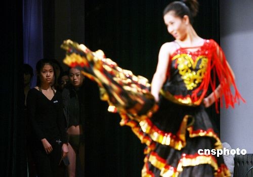 2月8日,在山東工藝美術學院服裝表演系的形體專業(yè)測試中,209名考生身穿泳裝在T臺上展示形體美,秀出才藝,同臺競爭40個入學名額。中新社發(fā) 王鋒鋒 攝