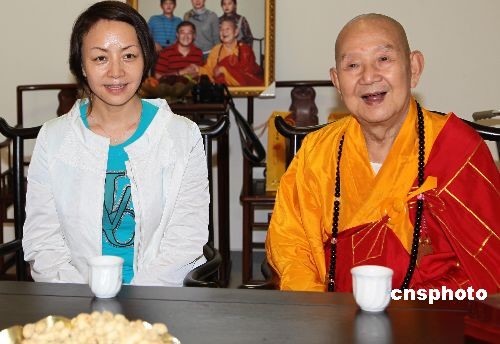 2月9日,著名演藝明星宋丹丹前往三亞度假過(guò)元宵節(jié)。一身休閑穿著打扮的宋丹丹游覽三亞南山景區(qū),瞻仰南海觀音,感受三亞美麗風(fēng)光,歡度休閑假期。圖為宋丹丹在游覽三亞南山景區(qū)時(shí)拜訪南山寺方丈、九旬高僧新成大和尚。中新社發(fā) 陳文武 攝