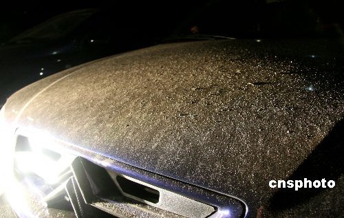 圖為距離火場三公里外的團結(jié)湖小區(qū)內(nèi)停放的車輛被灰塵覆蓋。中新社發(fā) 甄雪原 攝