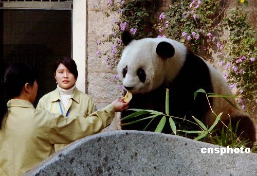 2月11日,生活在福州熊貓世界的28歲(相當(dāng)于人類的100多歲)大熊貓明星巴斯在接受臺(tái)灣電視臺(tái)攝制組拍攝間隙,盡享明媚春光。當(dāng)日,臺(tái)灣電視臺(tái)攝制組一行7人專程來到福州熊貓世界,拍攝生活在這里的大熊貓。中新社發(fā) 劉可耕 攝