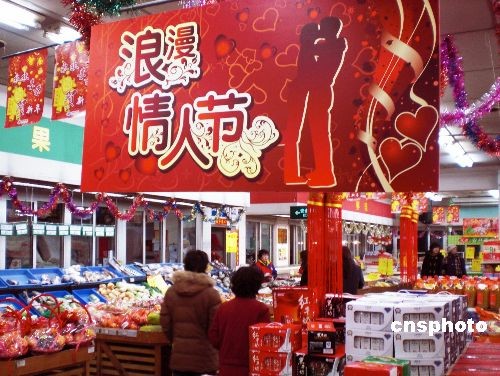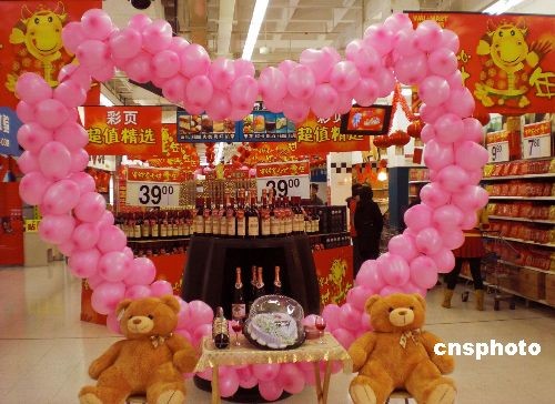 2月11日,情人節(jié)臨近,天津商場(chǎng)節(jié)日氣氛漸濃,各大商家也開(kāi)始精心布置門(mén)面,迎接“情人節(jié)”購(gòu)物季的到來(lái),一場(chǎng)“情人節(jié)”商戰(zhàn)正在悄然打響。中新社發(fā) 金立冬 攝